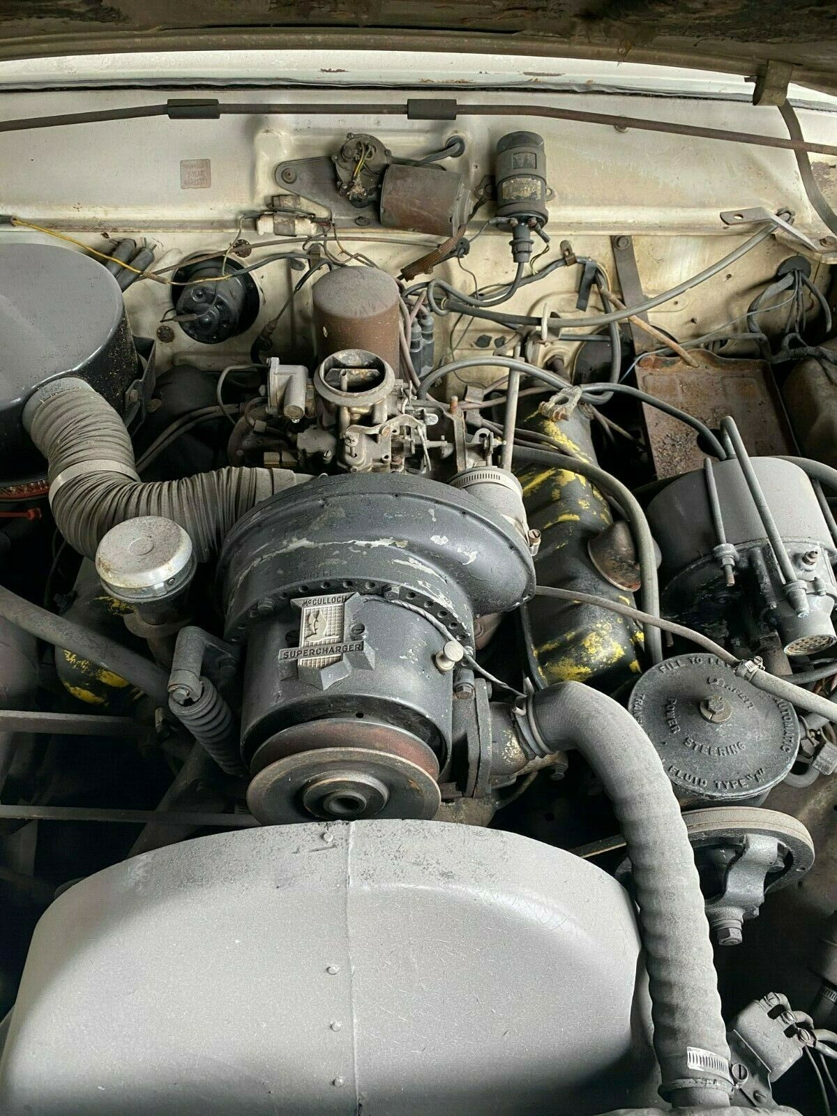 The engine in this car appears to be a ‘62-‘64 Studebaker V8… the yellow valve covers, and the more modern 2-barrel carb give it away. Check that engine number… and I’ll bet you’ll find I’m right…