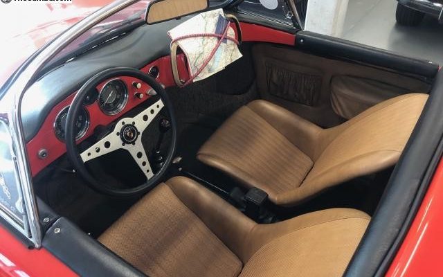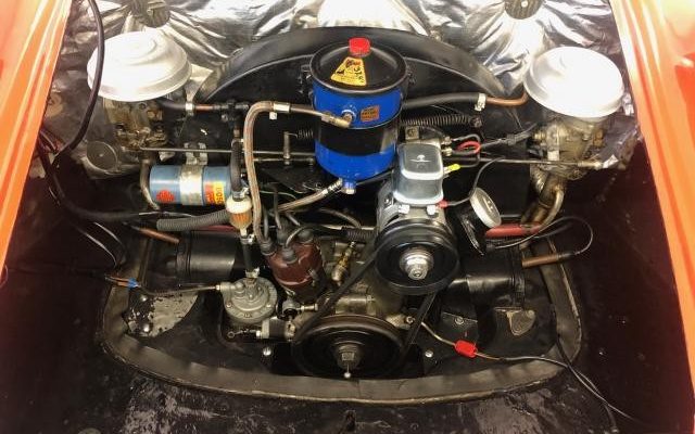 Powered by the sought-after Okrasa-tuned Volkswagen flat-four, it looks like there’s nothing on the outside of the engine to determine if it’s the TS-1200 or the TS-1300 model; the latter using upgraded internals and upping the power from 36 horsepower to 48. Both of the Okrasa kits included dual-port heads, upgraded from Volkswagen’s single-port heads, dual Solex 32PBIC carburetors from the Porsche 356, and supporting respiratory mods like carb linkages, filters, et cetera. This air-cooled boxer is mated to a manual gearbox; I’m guessing the stock Volkswagen unit, but with a car as rare and unique as this, information is sparse.