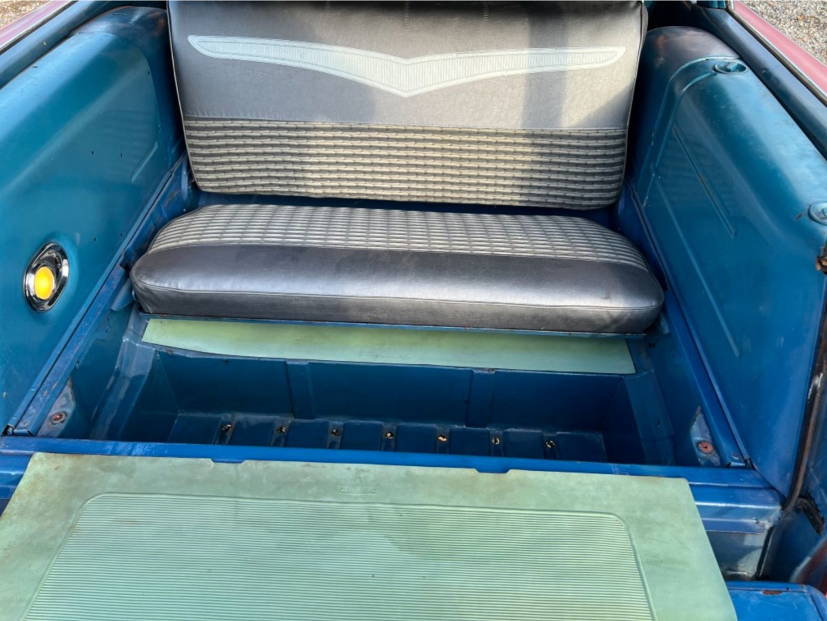 I do give the seller credit for the nice chrome one piece CA rear bumper. The Kingswood was next to the top line station wagon for ’59 Chevy, but I believe the Nomad was the one to have with all the bells and whistles.