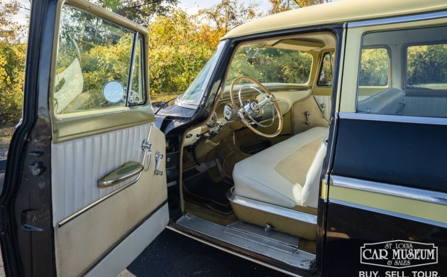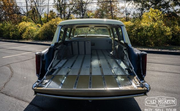 Before Chrysler touted the “Forward Look,” they introduced their new 1955 models as having “The 100 Million Dollar Look.” Of course, most collectors call any Chrysler from the Virgil Exner era a “Forward Look” Chrysler, but whatever you prefer to call them, they’re usually stylish, sometimes outlandish, and often pretty uncommon these days. One of the rarest is this 1955 New Yorker Deluxe Town and Country, which is being offered as an auction here on eBay in Saint Louis, Missouri (thanks to T.J., as always, for the tip). It’s being presented as a 44,874-mile unrestored wagon that was used by a previous owner to make the trip from Ohio to Hershey, Pennsylvania, for the big swap meet. It’s got flaws befitting a 71-year-old Chrysler with an aging paint job, but with dozens of close-up pictures, you can determine if it’s something you can use to haul parts around. The starting price may be a showstopper, however, as nobody has made the $34,320 opening bid.