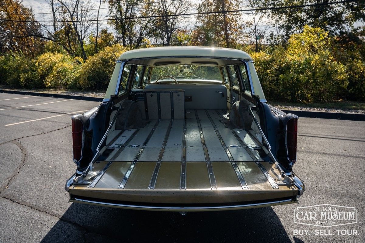 Only 1,036 Town and Country station wagons were built in 1955, and they were all powered by an engine that looks like a work of art on its own: the 331-cubic-inch Chrysler Hemi. The 331 produced 250 horsepower and 340 lb.-ft. of torque in its last go-round before being replaced by the 354 in 1956. The TorqueFlite was also not quite ready in 1955, so this wagon has the two-speed PowerFlite automatic combined with a 3.36:1 rear axle ratio.