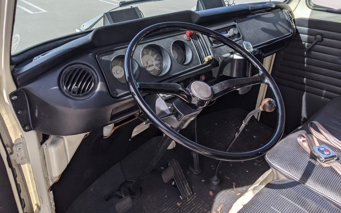 While not stated specifically, the engine should be a 47 HP, 1.6 liter, flat four-cylinder engine working through a four-speed manual transaxle. The seller doesn’t elaborate to any degree regarding this pickup’s operating dynamics other than to suggest, “Drive it home“. One interesting tidbit about the low-end pulling power of this transporter-inspired truck was gleaned from Hemmings and it states, “Despite being chronically underpowered, the Bus and its variants’ curb weights were kept down, and VW engineers equipped them with reduction boxes. These boxes contained two extra gears on the ends of both rear axles that reduced the transmission’s final drive ratio to a basement-level 5.73:1” It is assumed that this drop side pickup would so be equipped. And that’s important to know as top speed is supposedly limited to about 60 MPH which may make that drive home more time-consuming than originally anticipated.