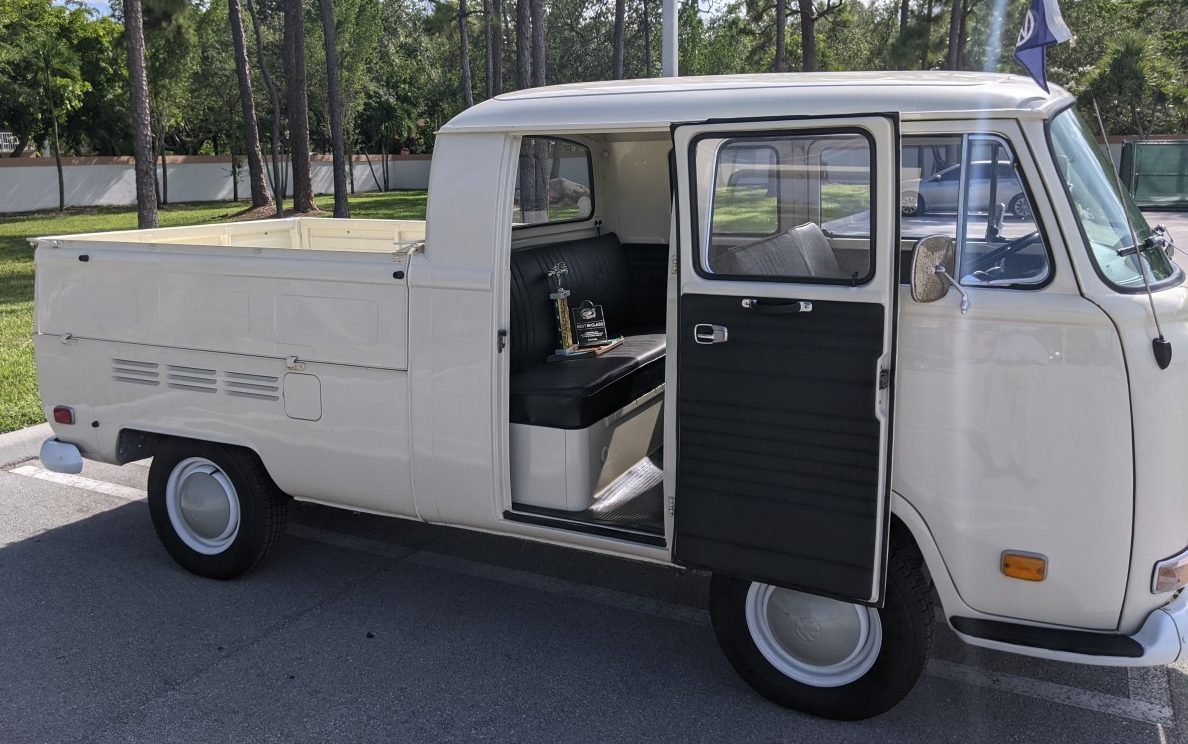 This would be a cool ride to show up with at a local cars and coffee event. There are 2 things I would consider doing. The first is spraying a liner (in the same shade as the body) on the bed and the inside of the side gates. I would also look to install the biggest air cooled Porsche engine that would fit (and any other necessary mechanical upgrades (transmission, brakes, suspension, etc.) necessary to maintain driveability). It would be one bad-ass VW.