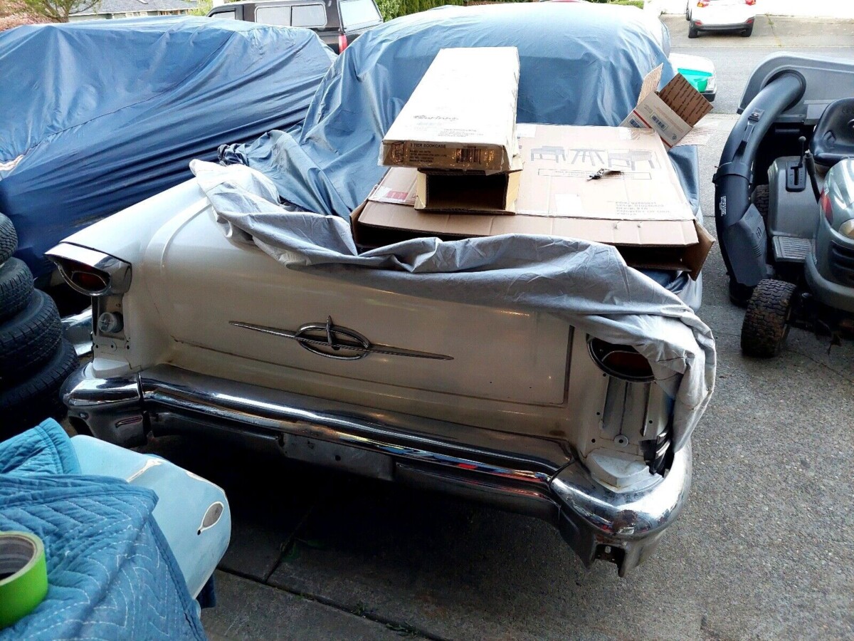 This guy would have more room to work on his other car if he rolled the Olds out to take some decent pictures of it. One of the best years for Oldsmobile before the ugly stick era.