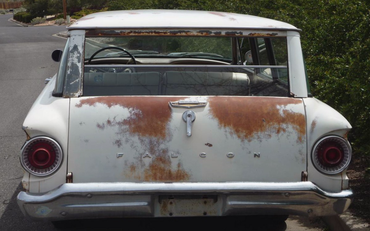 My older brother’s first car was a 1962 2 door, 6 cylinder automatic. No rust at the time (in 1968) I think he paid about $100 for it. And he drove the wheels of it. It handled really well, at least from what I could tell from the passenger seat. He drove himself and me to school and back every day. It was pretty quick too, so I’m guessing it had the “big 6”. The road out of town and to my school folowed a river for about 10 miles. Very winding. One morning we passed another Falcon around a curve with a sold yellow line, but it was a wagon. It turned out to be the town cop. He put his light on the dash board and started chasing us. We got far enough ahead that we made a left turn across a bridge and parked behind a grove a trees. A couple minutes later there goes the cop straight ahead with his light still flashing. We waited a couple minutes more and then back onto the river road and off to school. I still think about that day. I was about 12 years old and I still wonder, in such a small town as where I grew up, the cop didn’t just knock on our door after school or work. We were the only blue ’62 Falcon in town and he had the only ’60 black Falcon wagon in town. But I only have fond memories of that little blue Falcon