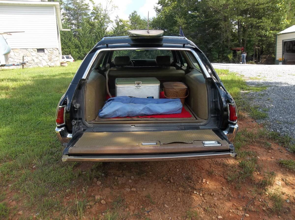 Growing up during the station wagon era, I remember sitting in the rear facing seats of my parents 1969 Ford station wagon. The tail gate on this Pontiac folds down and swings open for more versatility. The seller believes that this is an original 47,000 mile station wagon but I am sure more than one picnic has been served off its tailgate! The tan interior matches well with the black exterior and wood paneled sides. The dash is not cracked which is common for Pontiacs after exposure to the sun and the headliner is still in place.