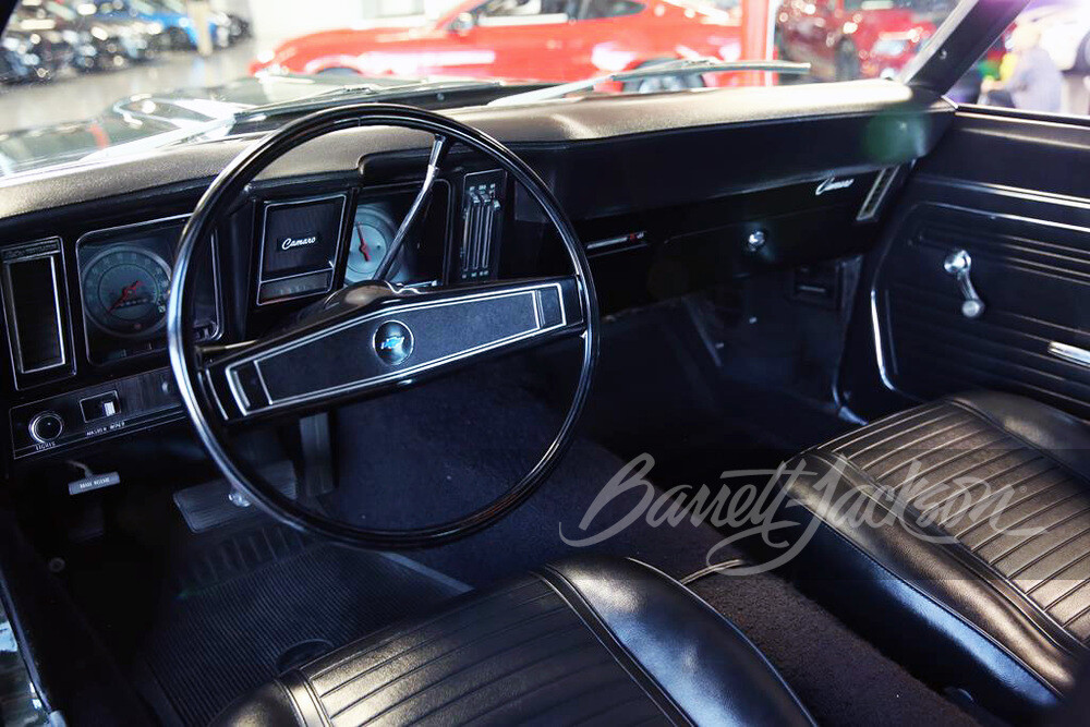 We’re told the Chevrolet has undergone a comprehensive restoration, including applying a new coat of the original Camaro color, Fathom Green. The black vinyl interior is brand new and is identical to how the car was built in 1969. Supposedly the cars came in only five colors and 10 each was built in each color, so this Camaro could be considered 1 of 10. The exterior appearance of the car is deliberately sparse, right down to the dog dish hubcaps. More details on these interesting and limited production cars can be found here on Motor Trend.