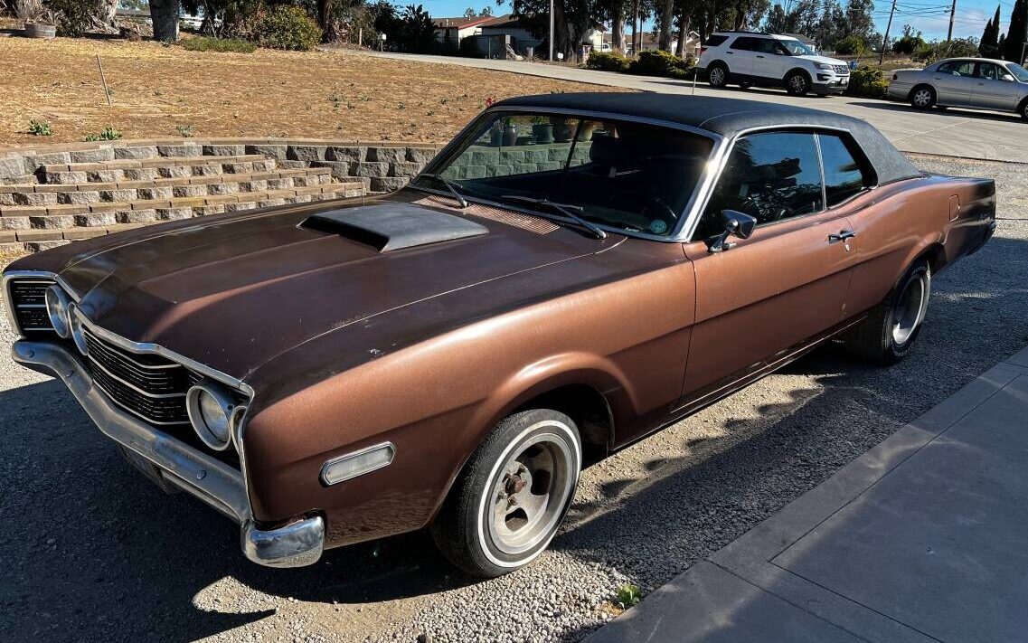 Externally speaking, this Montego presents pretty well. The closest original color that I can find, best representing this hardtop, is Code B, Black Cherry, but this looks more like an ordinary brown repaint and the seller states as much, “Have some rust bubbles, but no holes. Old repaint, vinyl top looks great“. Actually, the trunk lid channel shows what looks like a former shade of blue. The hood scoop appears to be borrowed from something else while the slotted wheels (Ansen Sprints maybe?) are certainly period correct but the “big and little look” seems off with the littles being too little.