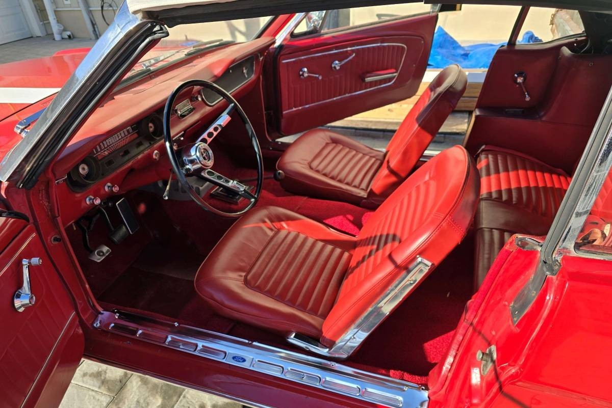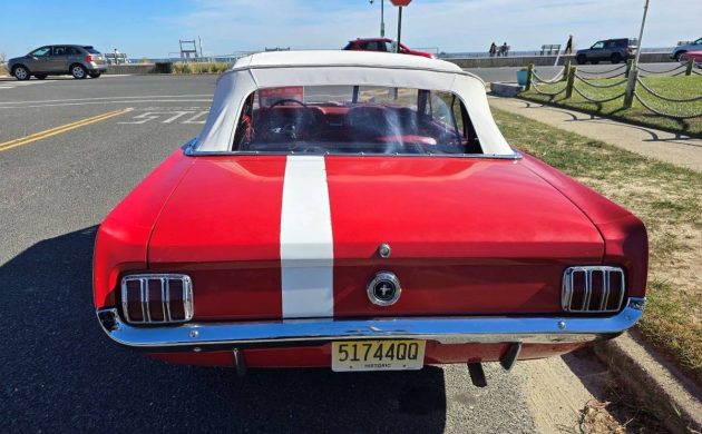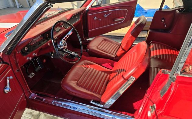 About 121,500 of the so-called ’64 ½ Mustangs were produced, followed by 559,500 more “official” ‘65s. However, all of these cars were titled as 1965s, so the ’64 ½ is more myth than reality. There were some differences during these production cycles, such as generators instead of alternators, and the base six-cylinder displaced 170 cubic inches vs. 200. The seller’s car has the former, installed in some minority of the nearly 29,000 76A convertibles produced for “1964 ½”.