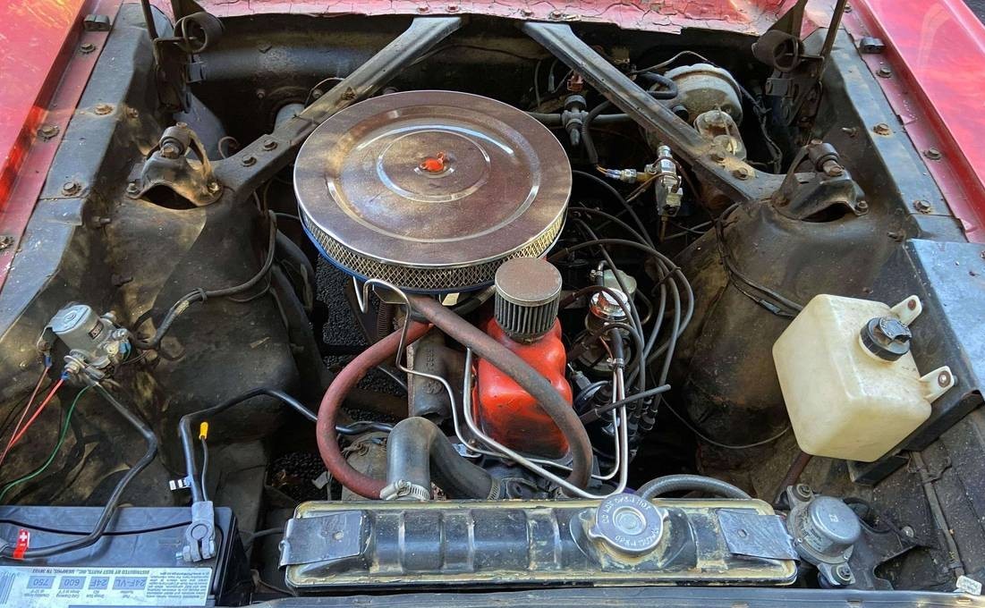 Not much in the way of history is provided for this ragtop pony. With a reported 75,000 miles, it looks too nice not to have at least been repainted over the past 60 years. There seems to be no rust, the paint is good, and the contrasting canvas bonnet is equally good. The matching red interior seems quite tidy, too, so we assume the buyer will get a turn-key car.