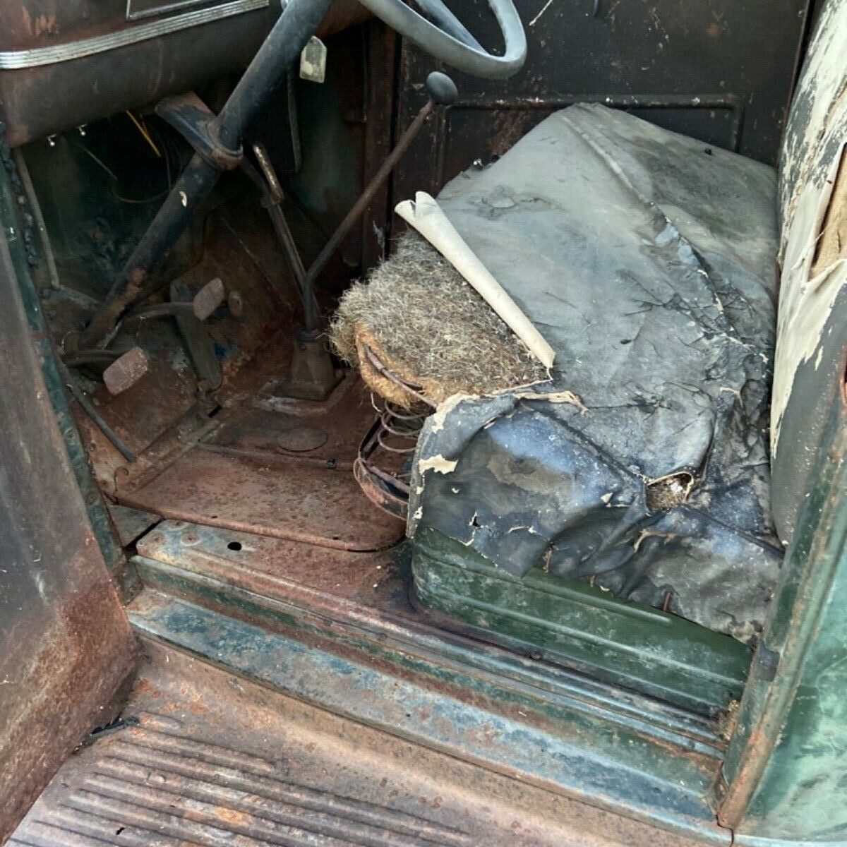 Just hammer those fenders out to a nice finish, redo the seat, get that tired old engine fired up, service the brakes and drive this bad truck. Grease went a long way on steering components on these old beasts. Paint is an option on a vehicle like this. Green is my favorite color, so perhaps just clean it real good and apply wax liberally, repainting the repaired fenders as needed.