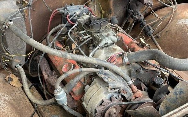 Mechanically speaking, as with so many Chevy trucks from this era, this one originally sported a 250 gross HP, 350 CI V8 but it was given the bum’s rush somewhere in the past and it’s now relying on a 283 CI V8 of unknown provenance. The seller tells us that it’s wearing a 350’s cylinder heads and feeds itself via a Holly four-barrel carburetor. It’s a non-smoking runner, three-on-the-tree style, but according to the seller, it’s not a stopper, “left caliper sticks, right rear drum/hardware missing“.