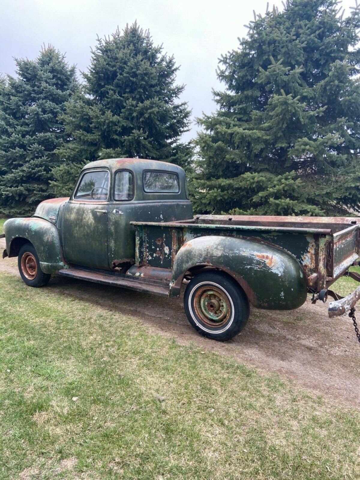 About 35 years ago in Phx., a friend of mine had just been thrown out by his drug-addict wife and was crashing on my couch (with his stuff in my garage) til he figured things out. After just a couple days, he decided he was moving back to CA and showed up with a ’49 GMC p/u to haul his stuff. We spent 2 days trying to fix the wiring on that poor old beast, but he was impatient and hit the road long before I would have deemed it road-worthy. He made it as far west as Tonopah, where I had to rescue him and tow the beast back to my place with my ’64 GMC p/u. Every 48-54 green Chevy or GMC I see takes me right back there.