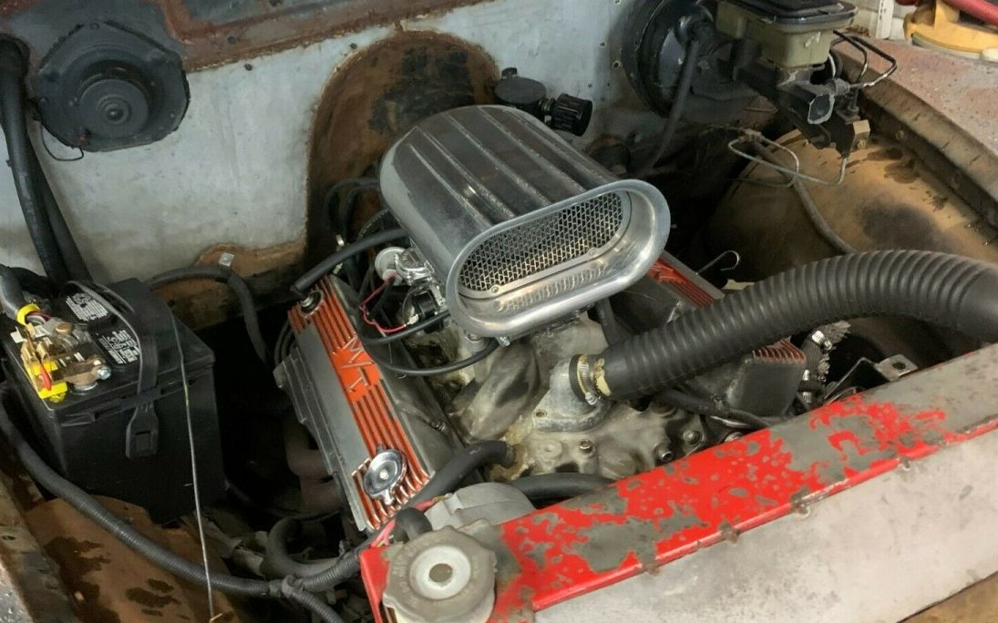 Power is provided by a 350 CI Chevy V8 which is connected to either a Turbo-Hydramatic 350 or 400 (depends on which line in the listing you read) automatic transmission. This rat rod’s driving characteristics are described as “…runs good and such a blast to drive. It has pleasant road manners, drives straight and cruises nicely down the road“. Equipment includes front disc brakes, power steering (which has a leak), and an aluminum radiator.