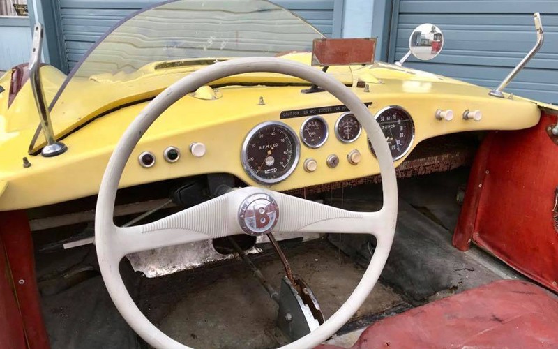 I don’t know if I’d even fit into this car but I’d love to try it. The cockpit has a powerboat look to me and you can see that some work will be needed inside, too. Berkeley made quite a few different models throughout a short six-year history, from 1956 to the end of 1960. They even made a three-wheeled vehicle that looked similar to this car but had a single wheel in the rear. That may seem unusual until you know that one of the two main people behind Berkeley was Mr. Bond. Not that Mr. Bond, but Mr. Lawrence “Lawrie” Bond, as in the name behind the famous Bond Minicar.