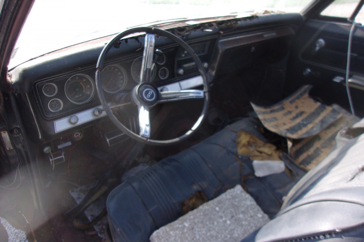 There is no way on earth this car is worth $11,000, personally, I don’t think its worth $3000, it needs every body panel, trunk pans, fender extensions, all the floors, and oh-yea BTW, the whole friggin dash board is rotted out, besides the fact the whole convertible top frame is JUNK (rotted out too). I would bet the core support is rusted, and would not be surprised if the frame of the car was rotted too. Sorry, sure its a SS396 convertible, but its just a parts car.