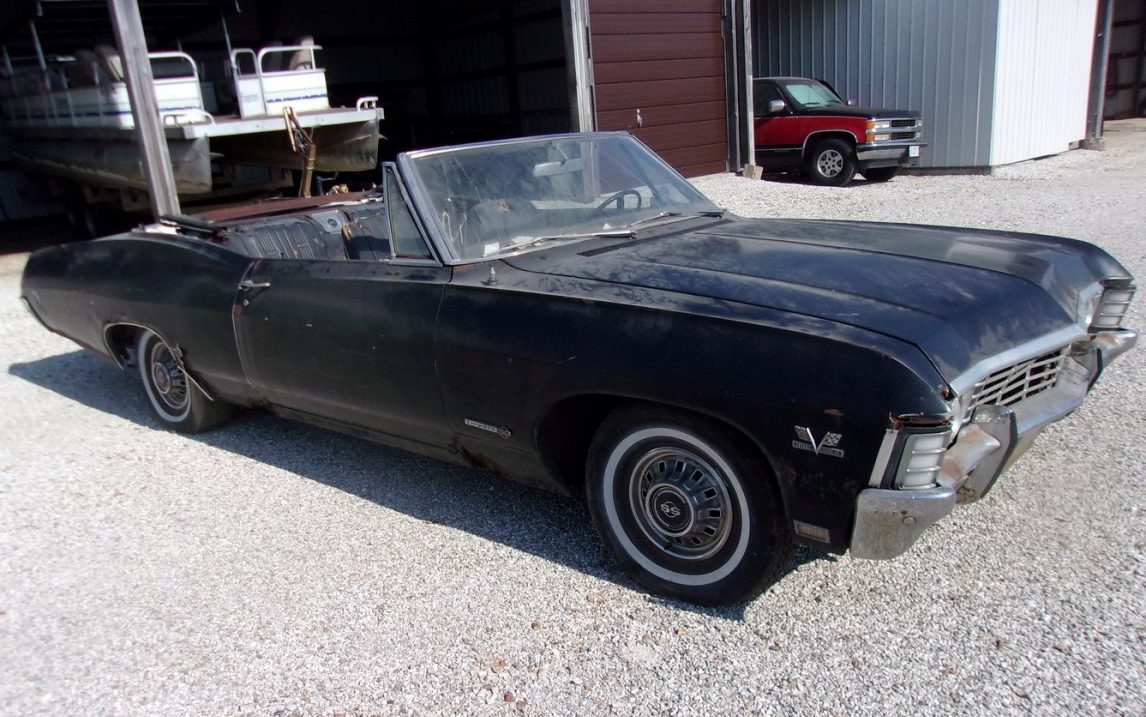 Reader Larry B found one amazing storage unit find! This Impala SS 396 Convertible is the real deal, with it’s original 396 already up and running. It needs a lot of work, but how often do you come across an unrestored Convertible Impala SS396? If you’d love to have this awesome convertible, you can find it in Quincy, Illinois and you can contact Larry via the link below.