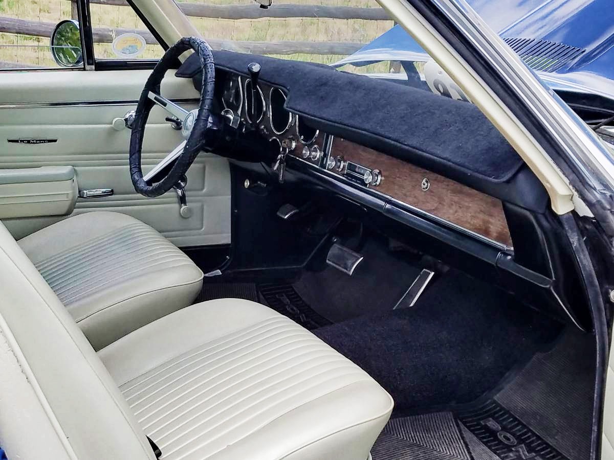 Body Condition: This ’68 Le Mans is beautiful – as seen by the pictures. The right-hand quarter panel was backed into many years ago in Butte Montana at a grocery store parking lot. It was repaired and looks great! Other than that incident, the car is never been wrecked. The interior is beautiful with bucket seats. This is the last year for the wing window.