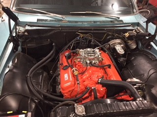The body had 2 small dents however the rest of the body is solid. Original enamel Turquoise paint. Numbers matching 396 V8, which over the summer I took out, rebuilt and put back in. While it was out I cleaned up the motor compartment. Original tranny hasn’t been touched.