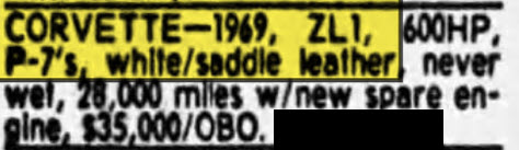 The orthodox wisdom is there are two “real” ZL1s (a Daytona Yellow coupe and a Monaco Orange roadster). It’s unclear how many originally were assembled (most sources cite between four and six) by Chevrolet for engineering and other purposes but the consensus is only two survived being scrapped or re-purposed. The yellow one appears never to have been changed from its original configuration while the orange car appeared in competition powered by both a ZL1 and L88 engine. That’s why the Corvette community’s “moderate” faction say there are two ZL1s while the hard-liners in the originality police insist only the yellow coupe is authentic. The yellow coupe was the one in Roger Judski’s now closed Corvette Centre in Florida and he belonged to the moderate faction.