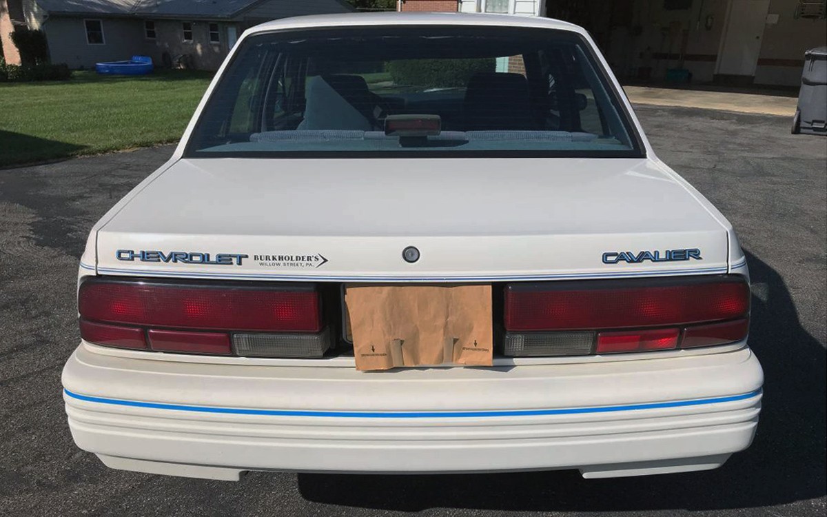 This car looks great for being a 29-year-old Cavalier. Being a four-door sedan doesn’t help the value or desirability but at least it’s an RS model, which was in-between the VL and Z24 models. Only the VL and RS models were available with four doors. The interior looks well-preserved in this 91,400-mile car, both front and rear. The biggest bummer with this entire car for me is that it has a THM-125 3-speed automatic transmission rather than a 5-speed manual. That made drivers wait an extra two seconds to get to 60-mph.