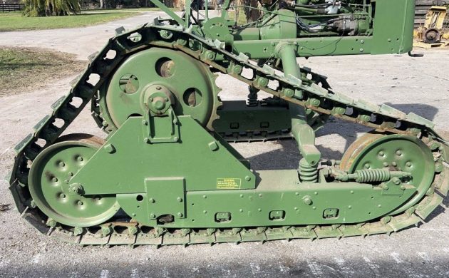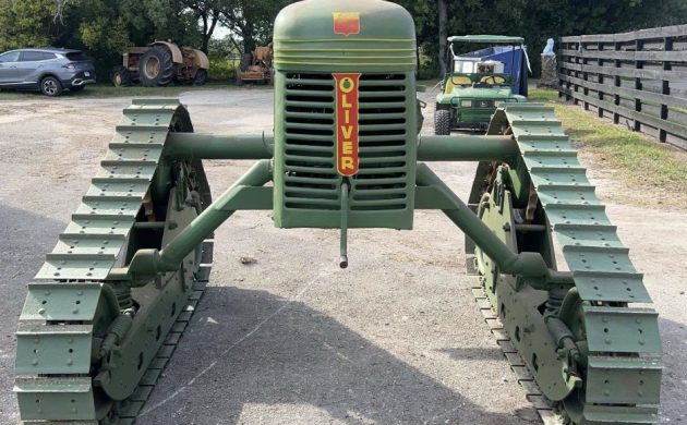 Oliver’s history stretches back to 1857, when it sold plows made from chilled metal, which resisted abrasion and lasted longer. In time, manufacturers began attaching implements to the new-fangled tractor, boosting sales of both products. Oliver expanded its repertoire when it bought Cleveland Tractor Company in 1944, adding dozens of new models to its inventory. The “Cletrac” offered a valuable option for farmers plowing tender fields – tracks spread the weight of the machine over a larger surface area, helping to prevent wheel ruts. The Hi-Crop configuration was made specifically to cultivate rows, providing enough clearance to leave seedlings intact. This one is an HG-68 with a 68″ center-to-center track width. It’s listed here at Aumann Auctions, with bidding at $4050; retrieve it from St. Cloud, Florida.
