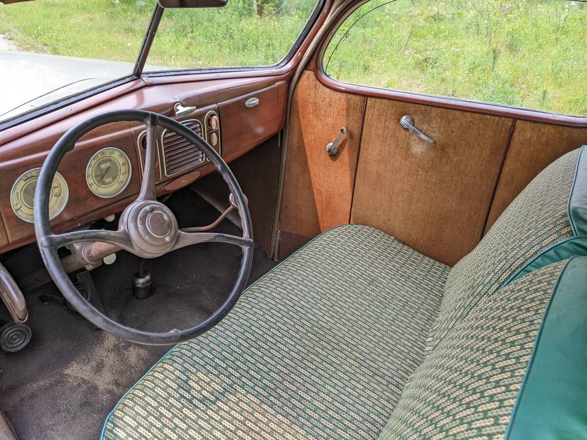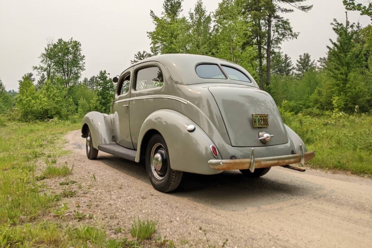 Great looking as is, although ’38 was an awkward year (style-wise, standards looked like warmed-over ’37s and deluxes had a weird bird-beak hood) for Ford, and has never caught on for hot rods or restorations.. 1940 was the first year for juice brakes for Ford.