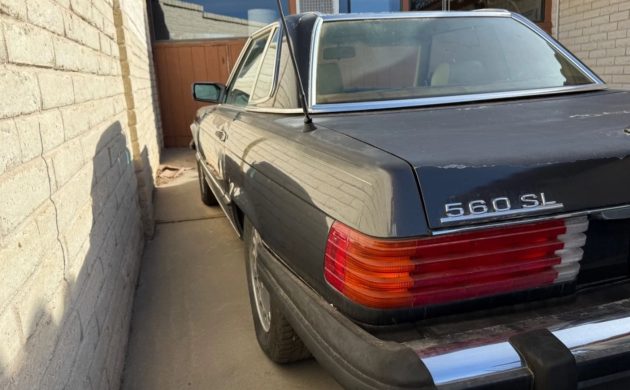 According to the seller, they’ve owned this 560SL for more than 11 years. During that time, the car remained intact and unmodified, retaining its original body panels and overall factory configuration. It’s described as a Southwest car with no rust, which is a major point in its favor given how vulnerable these cars can be to corrosion when exposed to moisture over long periods.