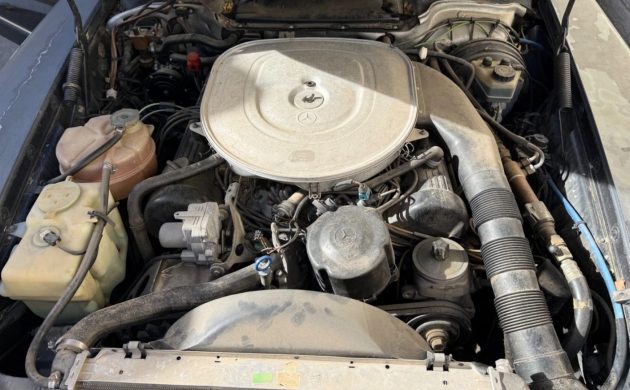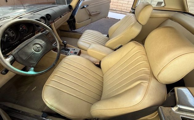 The car is powered by Mercedes-Benz’s 5.6-liter V8 paired with an automatic transmission, a combination that defined the final years of the R107 generation. While mileage shows just over 102,000 miles, the seller notes that the car has been parked for several years. It was reportedly running well when stored, but it has not been started recently and should be considered a non-running vehicle at this time. Any buyer should plan for a proper recommissioning before attempting regular use.