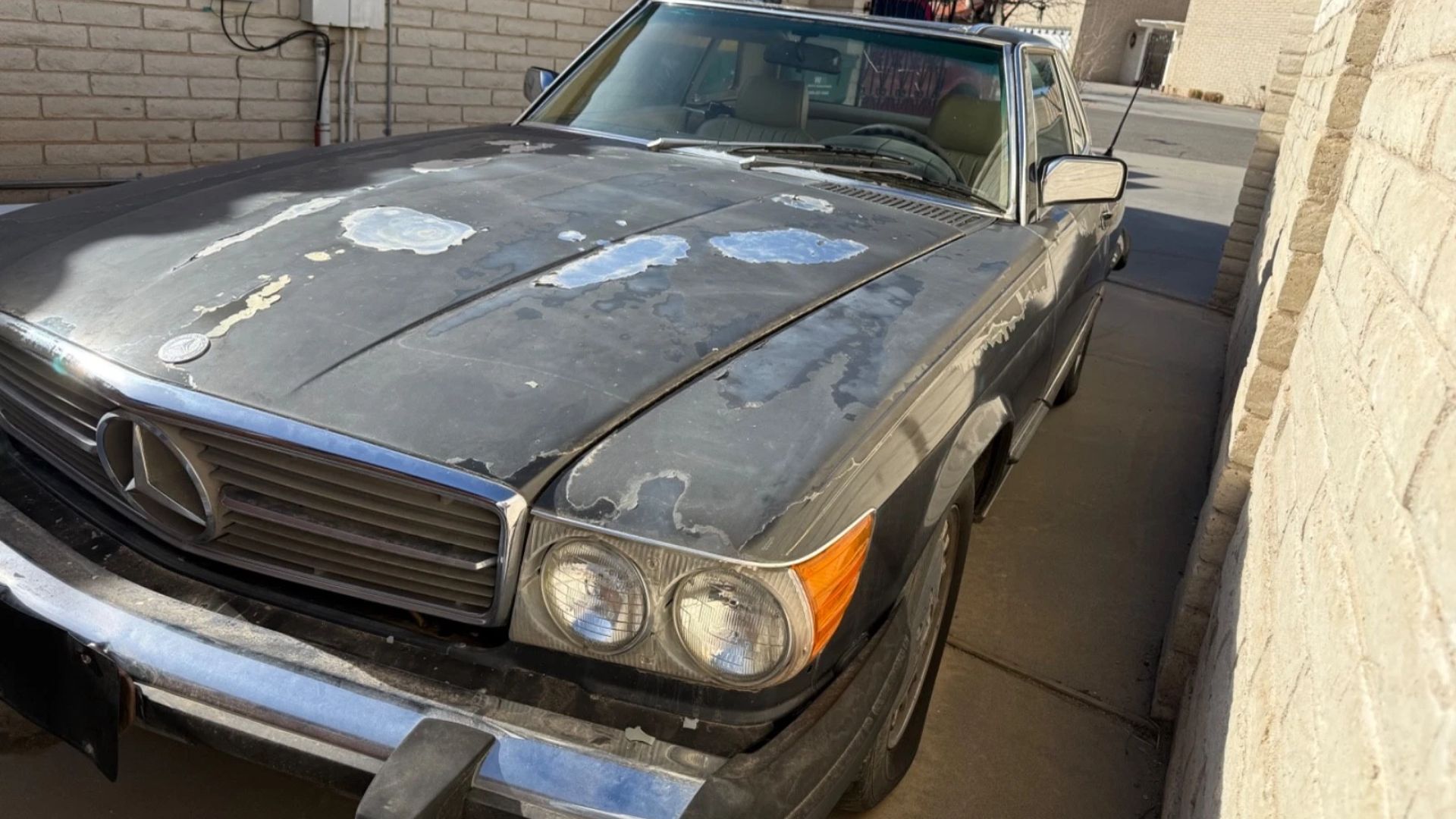 The car is powered by Mercedes-Benz’s 5.6-liter V8 paired with an automatic transmission, a combination that defined the final years of the R107 generation. While mileage shows just over 102,000 miles, the seller notes that the car has been parked for several years. It was reportedly running well when stored, but it has not been started recently and should be considered a non-running vehicle at this time. Any buyer should plan for a proper recommissioning before attempting regular use.
