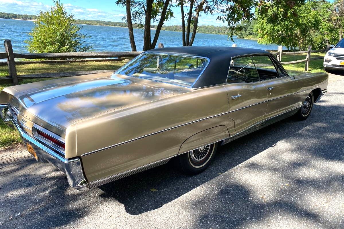 Owned a ’67 Bonneville wagon, vinyl roof, claimed to have been ordered for dealer’s wife, with all the options, including A/C, power front seat. 9 passenger. Ate a water pump every 40,000 miles. Frame crossmember that held up back end of transmission/engine broke under mild acceleration, metal fatigue not rust, gas tank (located up inside left rear back fender dropped to the ground one day, It was VERY low (but more clearance than a Tesla),hit a rock with oil pan just under flywheel, so ticked with every rpm, heater/A/C controls were electric/hydraulic and when you really needed heat, at 0 degrees, they did not work. But we drove it for years until the rust was beyond repair, and bought a ’59 Ford Ranch wagon, bottom of the line, very used, other than automatic transmission, no frills to go wrong. Not loved, but did me no wrongs. Would love this 4 door hardtop.