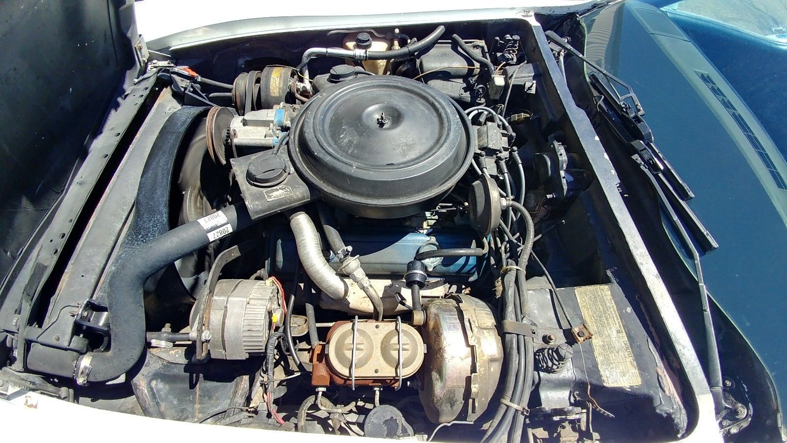 Besides an oil change and a new transmission modulator valve we haven’t had to do much under the hood. Someone put a cheap plastic fan shroud in there so that should be replaced at some point. It takes a couple pumps of the pedal to start in the morning so I’d probably want to rebuild that carb at some point too. It pulls good and has a nice growl though. Drive it as-is or save up your pennies and install a pair of headers and dual exhaust to release even more ponies!
