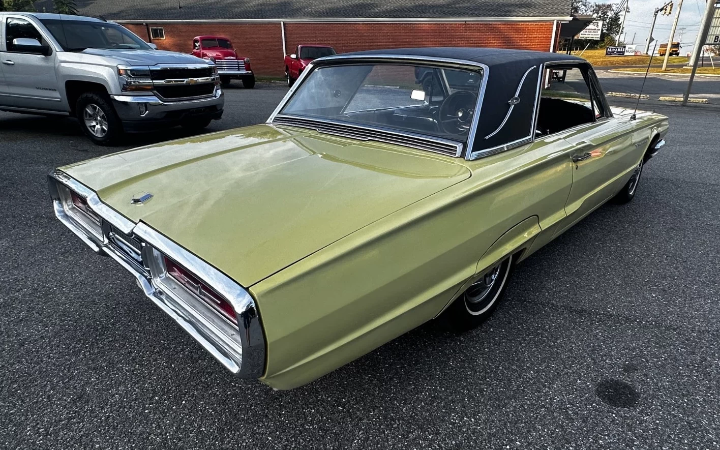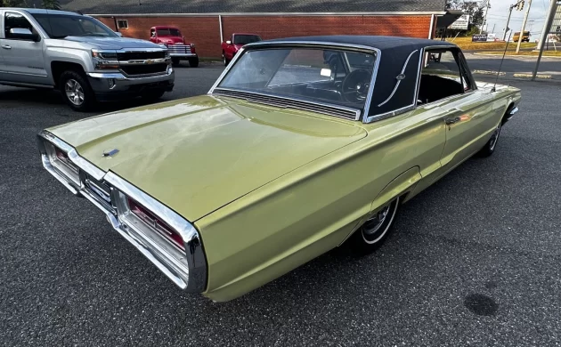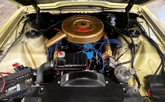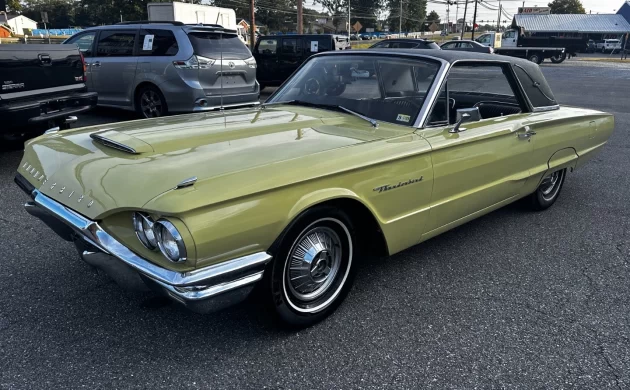 Thunderbird sales improved by almost 30,000 units with the new 1964 model, to an impressive 92,465, and Landau models made up a decent proportion of them (22,715); this one has had a new vinyl top installed, and it complements the yellow paint well. The color itself seems to be a midyear addition to the charts, Code “V” Sunlight Yellow (if I had to guess). It’s certainly had a newer paint job, because the engine compartment is a little more faded than the exterior, but it looks good in pictures, and the dealer invites you to inspect the car and take it for a ride. If you’re in the greater Lynchburg area, you might get a nice T-Bird for just a little more money than a rusty Bronco.