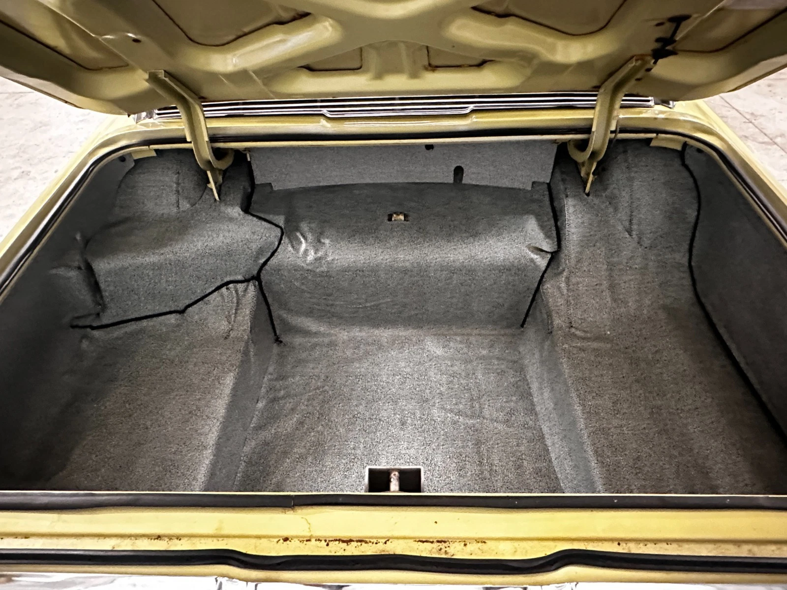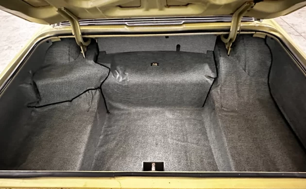 After some complaints about trunk space in the 1961-63 models, Ford relocated the fuel tank and added this “deep well” trunk for 1964, a huge improvement. The trunk mat in here is new, but the spare tire is missing.
