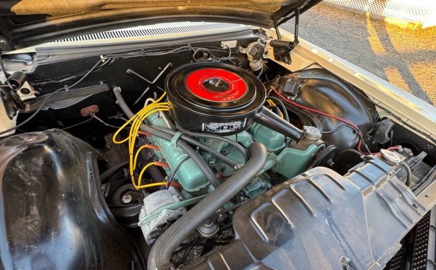 The interior is labeled as a nine-out-of-ten and is advertised as original. If so, this is an interesting case; it appears to be an Electra 225 Custom, which had a split bench with armrests in the middle and a “vinyl [interior] so soft and supple you’ll find it hard to distinguish from real leather.” The Custom Sport Coupe cost $4,179 compared to the “standard” Electra 225 Sport Coupe’s $3,999, and it outsold the standard car 9,570 to 6,302; this one, however, has no air conditioning and no power windows. The lack of air conditioning will limit its appeal to some, but as I’ve mentioned before, I’ll personally sweat a little and enjoy the simplicity of the engine compartment.
