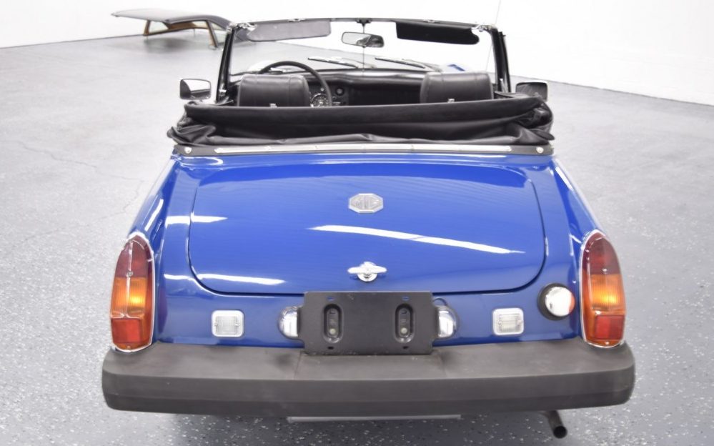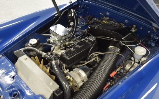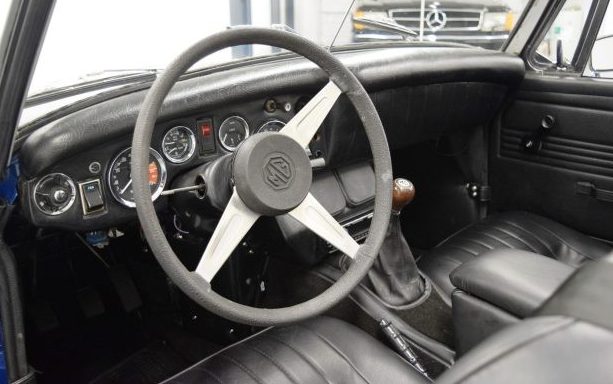 This Midget, according to the seller, has been refurbished and it appears that the restorer didn’t miss much if anything. You have to actually wonder about the cost of a redo vs. what the car will yield at auction. Anyway, the beautiful blue finish is quite deep and looks well applied while all of the black trim, including the aforementioned abundant bumpers, are true black and not faded, wavey or split. The black convertible top is listed as wrinkled but experience indicates that parking such an afflicted top in the sun usually smooths it out. As for the plastic rear window, it’s extremely clear. Considering the short overall length of a Midget, it actually looks pretty balanced even with the top in the raised position.