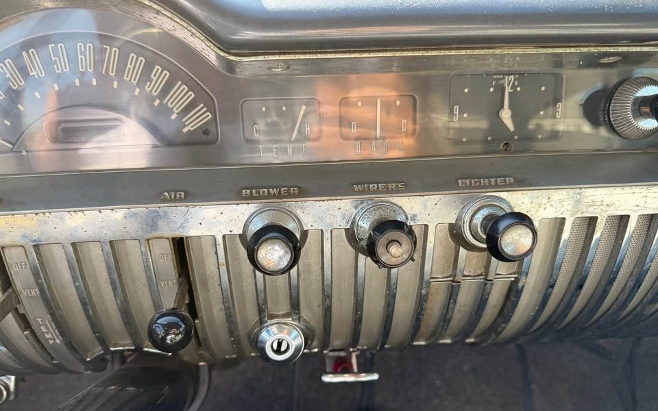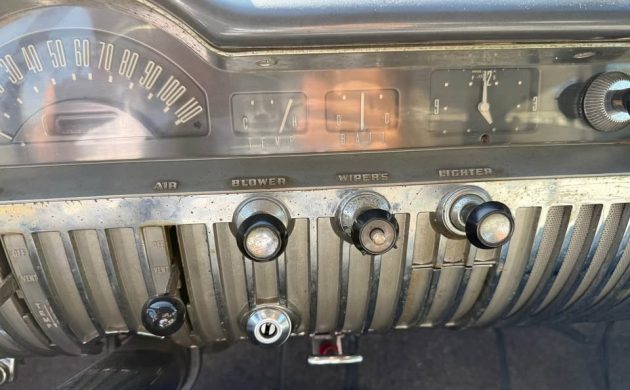 The knob below the dashboard tells us (as did the seller) that this car has the factory overdrive option attached to the three-speed manual, which gave the Mercury buyer a 4.27:1 rear axle ratio. A new clutch and master cylinder were installed 3,000 miles ago, which is nice, but if I were interested in this Mercury, I’d be asking about the temperature gauge. It’s pegged on “H” in this photo. Does it work? Has the engine been heat soaking for 20 minutes? It’s very possible that the temperature will come back to normal when the engine’s started, but it’s worth an ask.