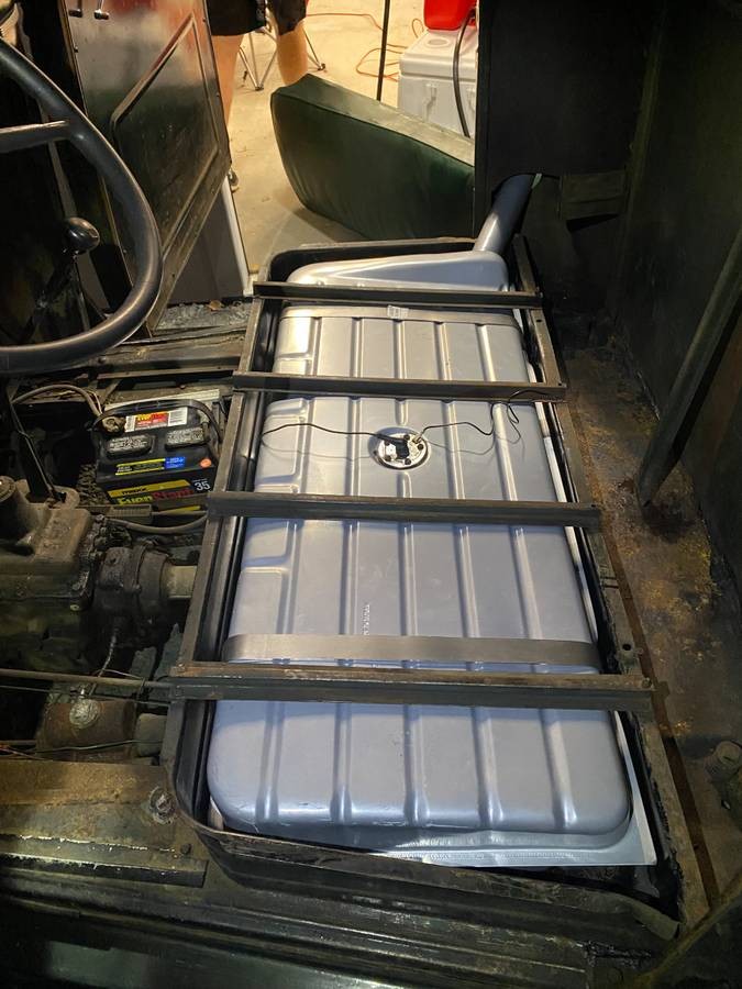 A new gas tank was recently fitted along with other new parts in the fuel system. Of note, the gas tank area was treated with POR-15 prior to putting the new tank in. It really seems like this truck has been set up for long-term enjoyment. For example, the bed floor has been replaced with heavy diamond plate. Not original, but certainly usable and practical.