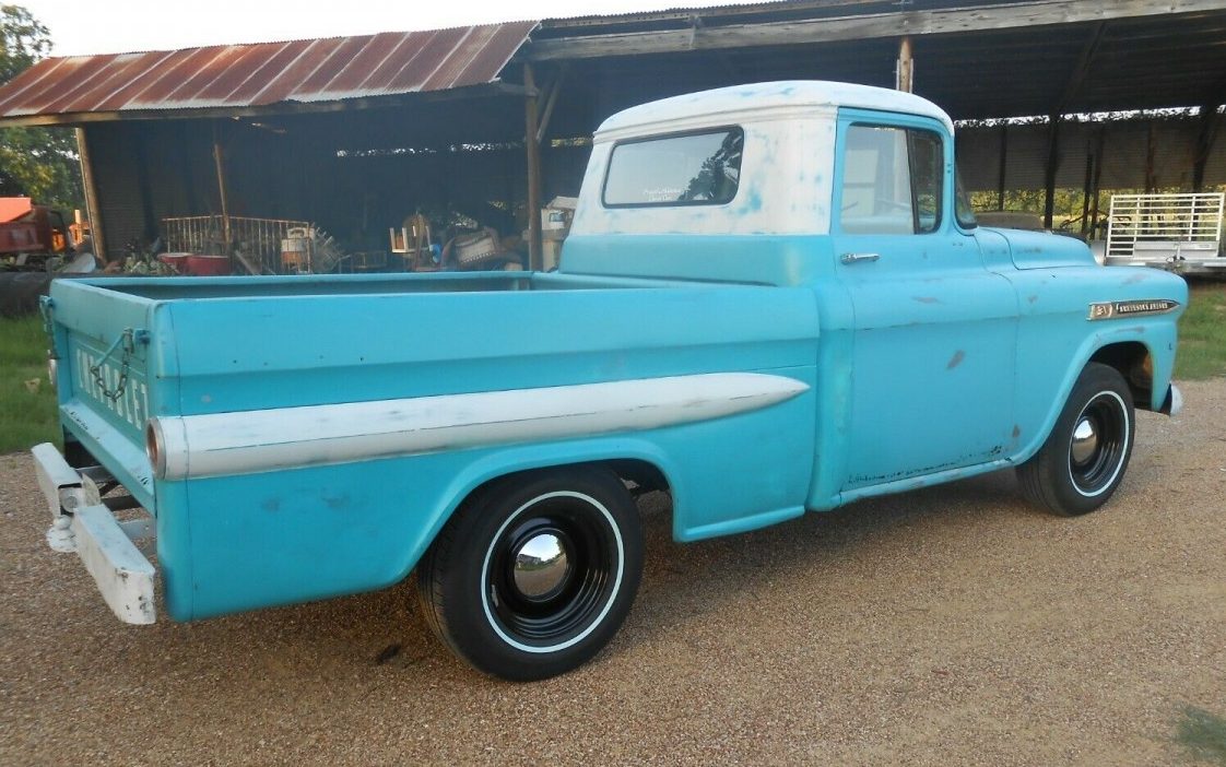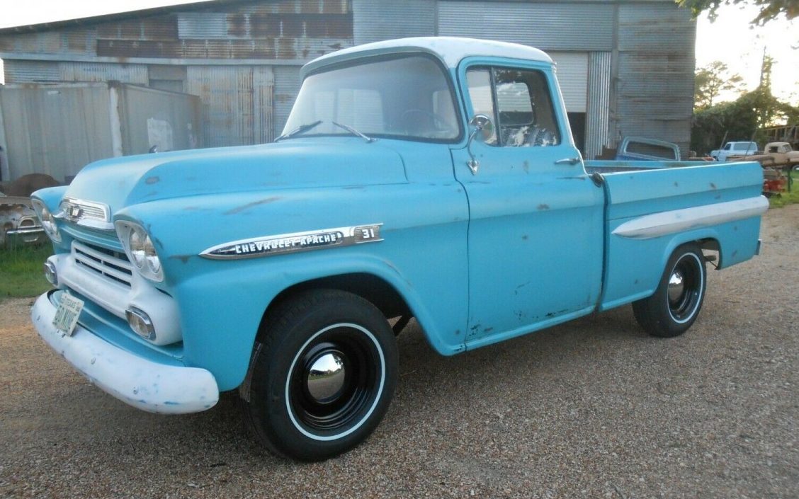 1958 saw significant styling changes from the Big Three automakers. Quad headlights were the design option Chevrolet and Ford adopted for most of their cars and trucks. Chevrolet was perhaps the most innovative. Their light-duty pickups were beginning to morph into stylish modes of transportation rather than utility vehicles. According to HH Classics, “For the first time, the fleetside (aka straight side) bed became available in 1958. The front end was also significantly redesigned for this year. The light-duty trucks had a new name – Apache – medium-duty trucks went by Vikings, and Spartan was the name for heavy-duty trucks.” This 1959 Chevrolet Apache can be found here on eBay with a current bid of $9,600. Located in Rockdale, Texas, the reserve hasn’t been met yet. The current owner has done a ton of work to this truck and it is ready to drive! Check it out.