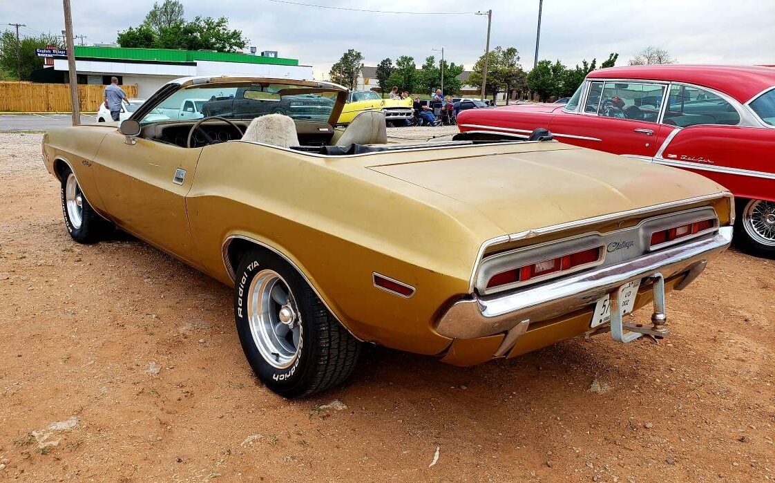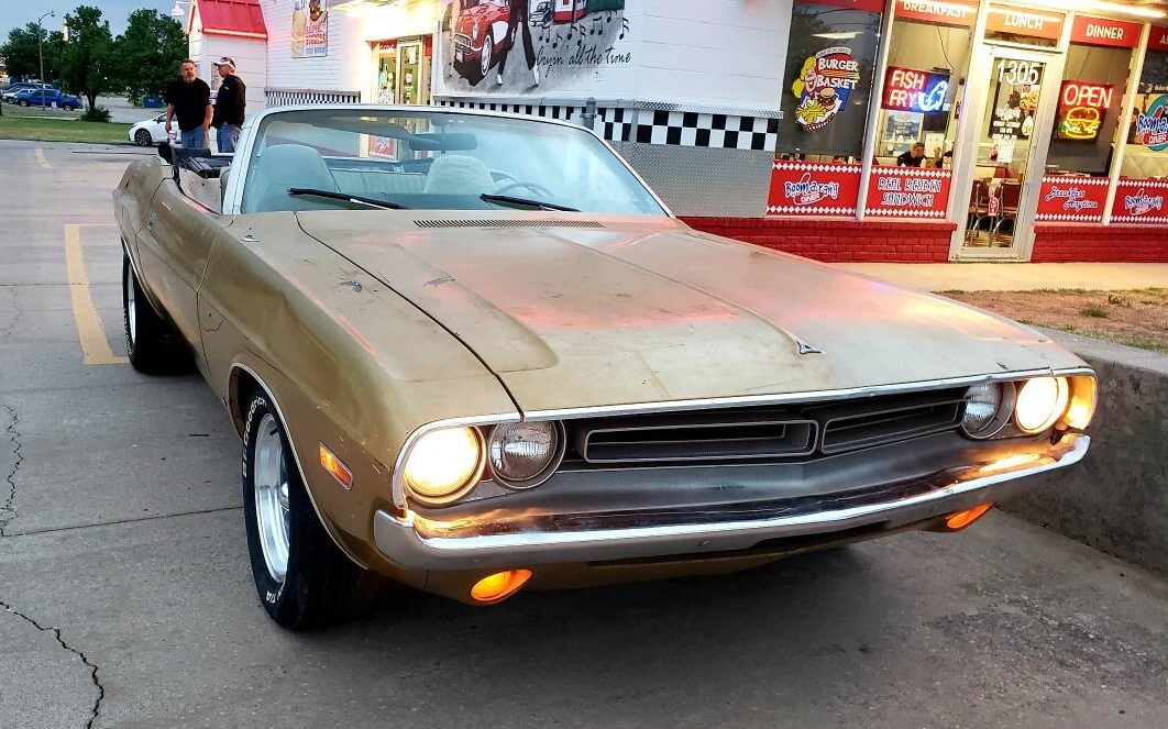 It takes some stone-cold swagger to roll out in a gold drop-top ride with a matching gold vinyl interior. It’s all about you in this 1971 Dodge Challenger convertible from Oklahoma City, Oklahoma. After spending most of its life with one family, the 318 V8 automatic Dodge comes for sale here on Craigslist, where the never-restored classic can be yours for $37,500; that’s about 1.3 pounds of gold according to CalculateMe. Highly original with a claimed matching-numbers original engine, the honest-looking rag top caught the eye of reader T.J. who submitted the tip on this interesting ride.