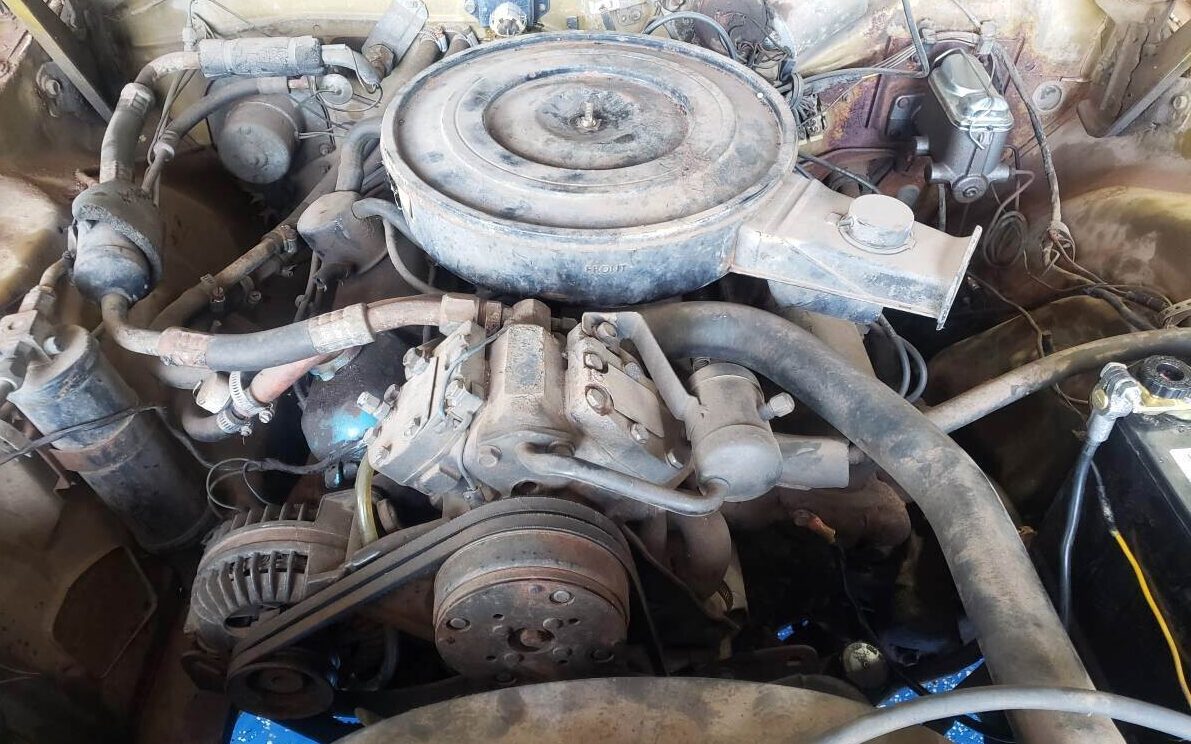 Throw some dust on that brake master cylinder and you could pass for all-original, except maybe for a few rogue wires. How often do you see a factory air cleaner cover on a never-restored Challenger? The 318 cid (5.2L) V8 made 230 HP (gross), enough to make a nice V8 sound and keep up with traffic. Speaking of unusual originality, the air conditioning compressor is usually bypassed by the time an engine compartment achieves this level of… authenticity. While driving behavior escaped the listing, it looks to be a driver, and the 318 “fires right up,” according to the listing.