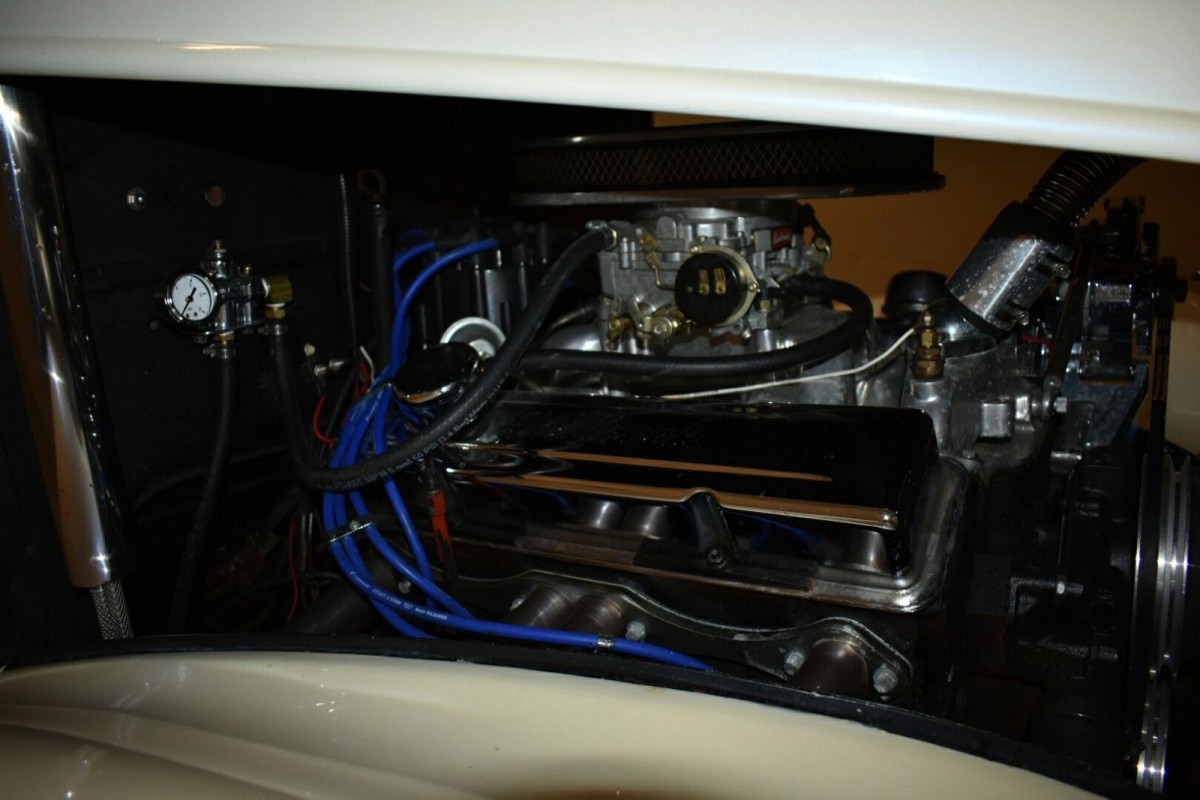 The original 206ci 6-cylinder engine is long gone, and in its place is a 350ci V8 backed by an automatic transmission. The seller states that the engine runs strong and the transmission shifts smoothly. He also says that the exhaust, with outlets on either side of the car just below the leading edges of the rear fenders, sounds really nice. The car is fitted with drum brakes, and rolls on True Spoke wheels with good tires. The car has also been fitted with turning signals, and all of the lights operate as they should.