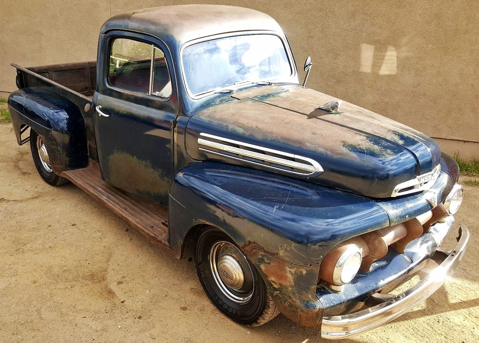 This screams “fake patina” to me. The paint is fried on the roof and hood, but the tops 9f the fenders look brand new. Then the vertical surfaces at the corners of the truck look worn down too. Makes no sense. I get thwt folks like the honest, weathered look but to create it artificially seems senseless to me. And whoever thinks “clear coat over it” is something that looks attractive, well; the best I can say is “invest in indoor plumbing and some dentures….”