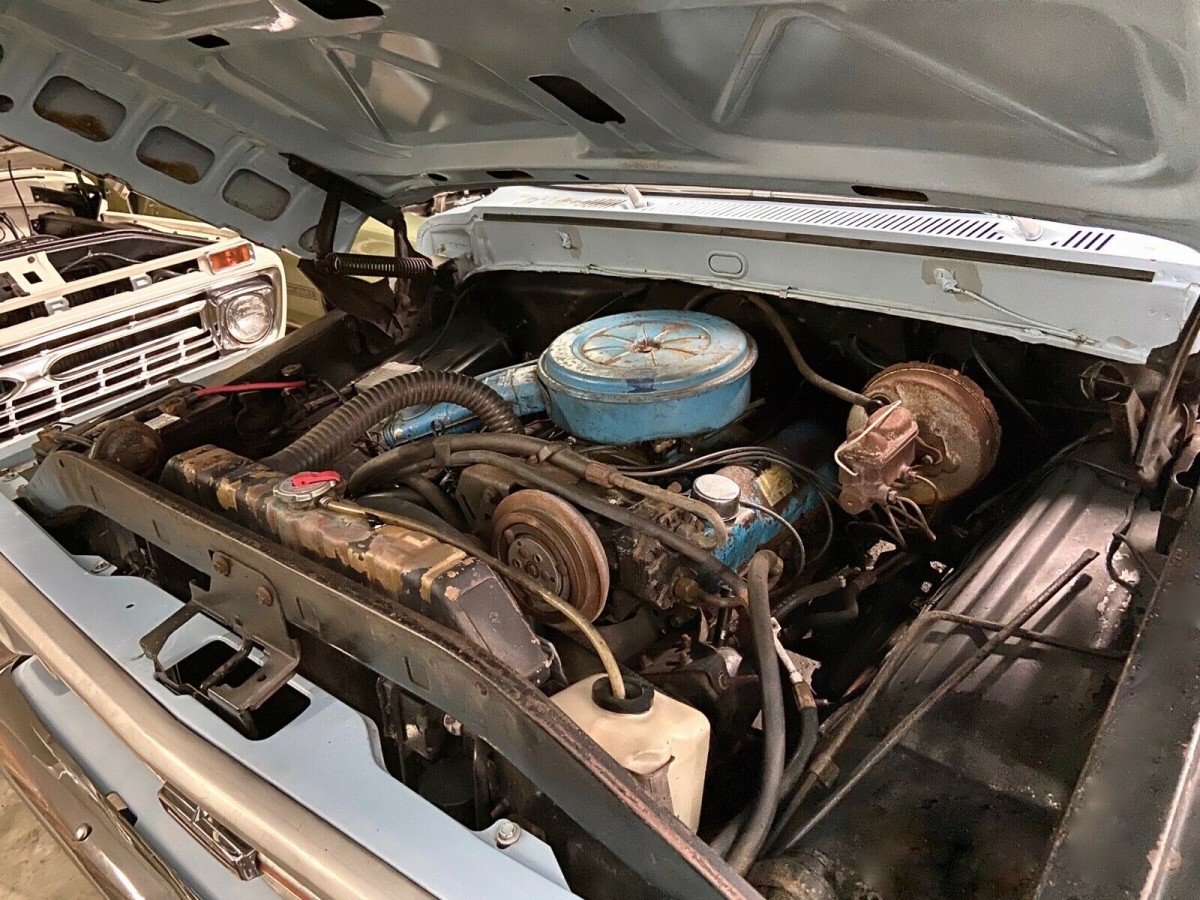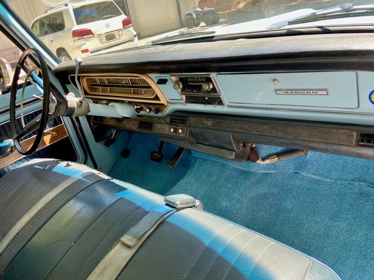Before I get into the specifics of this vehicle, I have found that this F-100 throws up a bit of a mystery. The owner lists it as being a 1968 model, but the hood emblems, along with the VIN, actually indicate that it is a 1969 model. In fact, I can narrow this down to it having been built in August of 1969. This F-100 isn’t your average workhorse, but one look around inside the bed also reveals that it is no trailer queen either. The bed has all of the usual scratched paint that you would expect in a pickup that has worked for a living, but it doesn’t sport the sorts of dents and dings that would indicate careless ownership, or that might be due to heavy objects simply being dumped into the bed. The paint is the original shade of Sky View Blue, but the vehicle was treated to a repaint back in 1980. All things considered, this has held up quite well. It is beginning to show its age, but the Ranger still looks quite presentable. During the repaint process, the original rear window was replaced with a sliding window, and this, like the rest of the glass, is still in good condition. The trim and chrome are presentable, and its condition is appropriate for a driver-quality vehicle. The wheels and tires are new, and I personally think that they fit nicely with the character of the rest of the Ford. As you will see, this would make an excellent tow vehicle, and with that in mind, a quick look reveals that the F-100 is fitted with a Hayman Reese tow hitch.