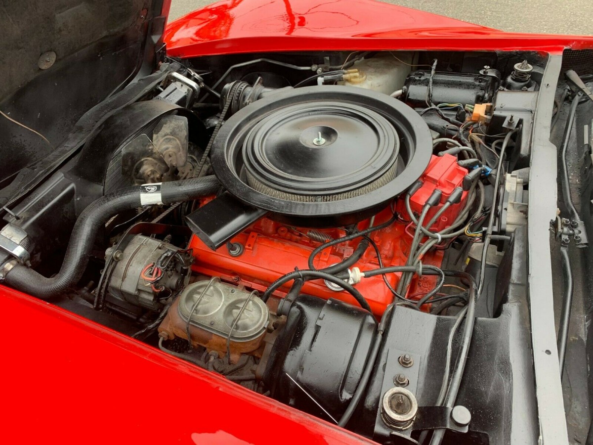 The engine is a 350 cubic inch V8 motor that has recently been rebuilt. Unfortunately, there are no details about the rebuild so I would assume it was rebuilt close to stock specs. There were two engine options available in 1975 that were both based on the Chevrolet 350 cubic inch engine. The base L48 engine produced only 165 horsepower and the optional L82 engine delivered 205 horsepower. The VIN reveals that this car was fitted with the L48 engine from the factory. For 1975, all Corvettes were fitted with catalytic converters and used unleaded fuel only. The HEI distributor also made its debut in 1975.