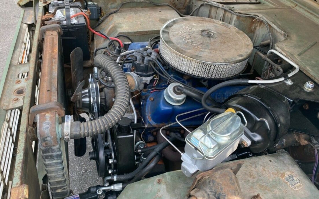 The engine is the original 302 cubic inch V8. As you can tell, there have been some things replaced recently including the power brake master cylinder, power steering pump, fan pulley, and fan belt. The seller says the engine and 3-on-the-tree manual transmission both work well. If this was my truck, I’d probably replace the radiator. It looks original to the truck and a nice aluminum replacement is inexpensive and easy to install.