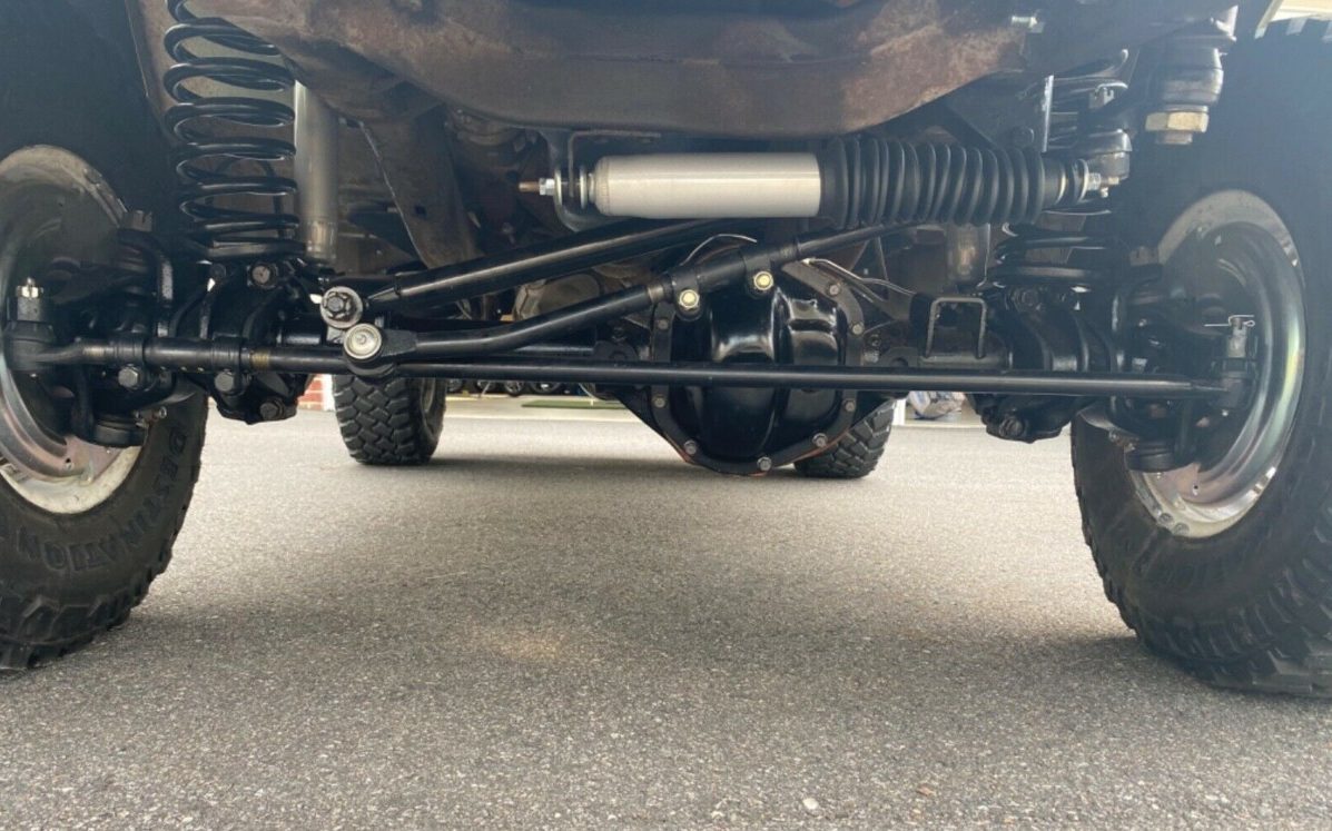 Here is a good shot of some of the work that has been done to the underside. The Dana 44 up front has been rebuilt. The brakes have been upgraded to discs at all four corners, with new brake lines. The suspension lift is 2.5 inches, which is fine for first-gen Broncos. The mild suspension lift doesn’t make it too top-heavy and allows for larger tires with the un-cut rear fenders. Speaking of tires, they are 31×10.50’s, which is a great size for this rig. The ad says “the fenders have been bent out some to accommodate the tires…,” but you can’t really tell from the photos.
