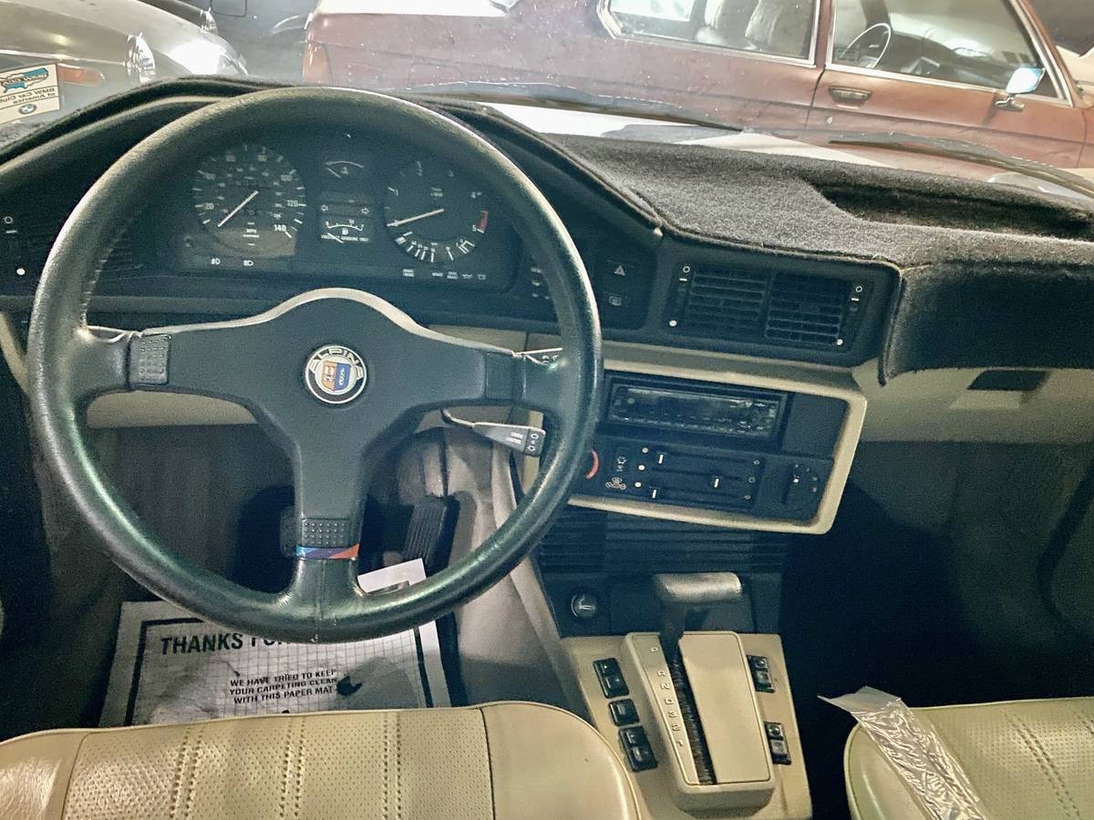 The interior is standard E28 stuff, with the so-called “Comfort” seats, generally considered less desirable than the optional “Sport” buckets with their thick side and leg bolsters. So, if it weren’t for the rear spoiler, chin spoiler, and graphics going down the side, you’d be hard-pressed to call this anything other than a standard entry-level E28, save for the fact that it wears Euro bumpers and lighting. The steering wheel is just a standard U.S.-spec sport package three-spoke wheel, and someone has removed the BMW roundel logo from the center and replaced it with an Alpina badge. Now, the automatic isn’t a total shock, as many B9 cars were destined for the Japanese market, where automatics are generally preferred.