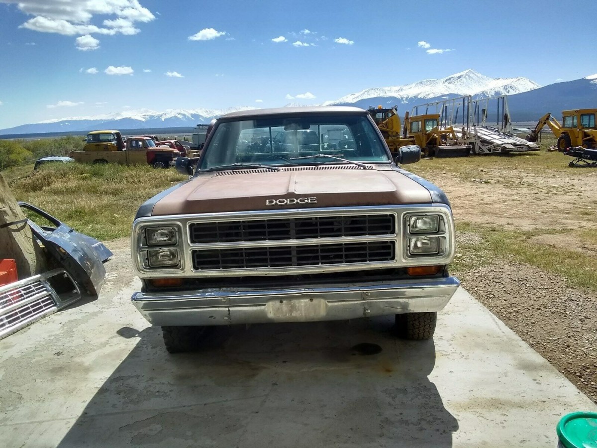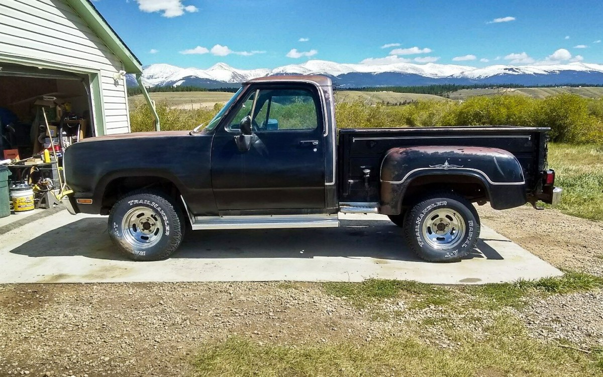 I had a ’78 Warlock with a 440″ in it, automatic 2 wheel drive, A/C, cruise control, nicely equipped, mostly all the Gold Striping on it had faded off of it but the Metallic Black paint was fine, the wood floor of the bed was nonexistent, gravity was the only thing holding the bed down. I loved that truck and how strong it ran, please excuse the poor picture.