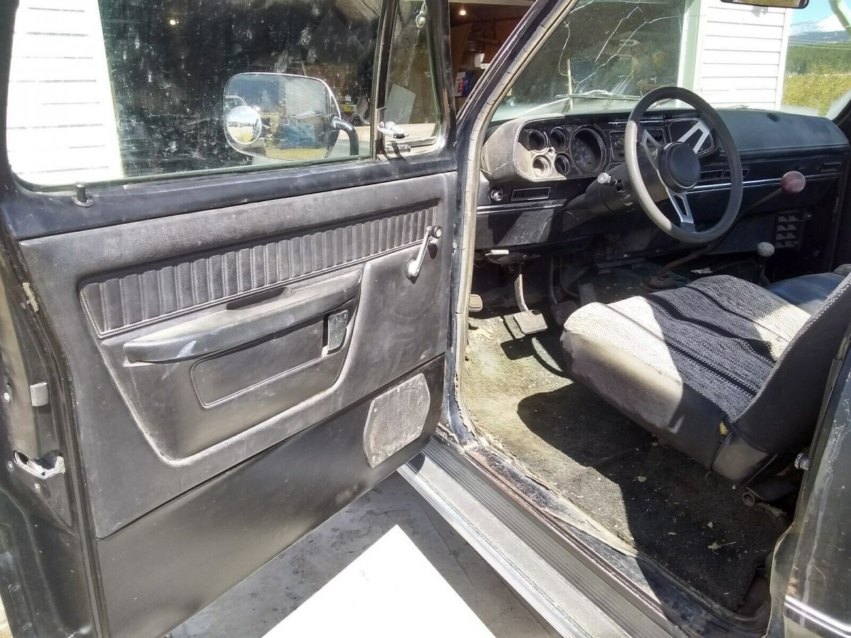 As reflected, the interior is worn evenly throughout and has bucket seats with a console. The truck is equipped with power steering and power brakes. The owner replaced both front fenders and the driver door that was rusty. There is also rust on the hood and cab. It does not appear that the truck has been stored indoors.